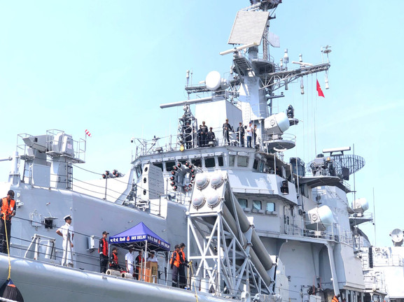 Cận cảnh khu trục tàng hình Ấn Độ cập Cảng Tiên Sa ở Đà Nẵng