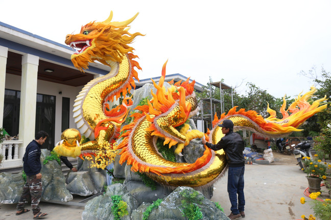 Trưa 27/1, trả lời VTC News, lãnh đạo thị trấn Lao Bảo (huyện Hướng Hoá, tỉnh Quảng Trị) xác nhận, chiều mai (28/1) linh vật rồng do chính quyền thị trấn đặt nghệ nhân Đinh Văn Tâm (huyện Triệu Phong, Quảng Trị) làm sẽ được trưng bày tại vị đẹp ở trung tâm thị trấn để phục vụ người dân đón Tết Giáp Thìn 2024.