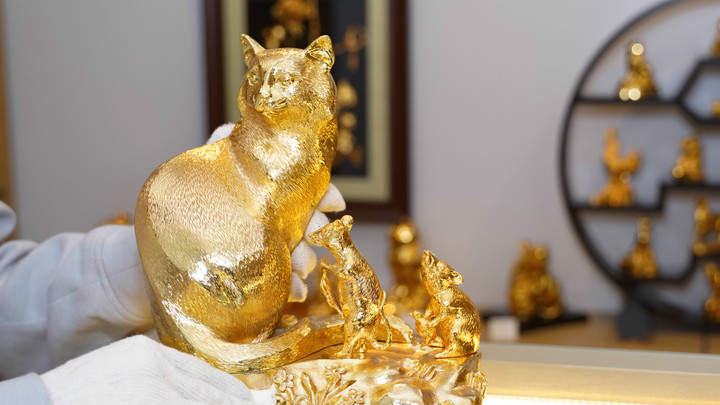Cận cảnh quá trình chế tác tượng mèo mạ vàng 24k đón Tết Quý Mão