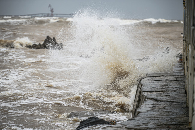 Sóng càng lúc càng lớn, báo hiệu sức gió mạnh lên khi bão Bualoi chuẩn bị đổ bộ.