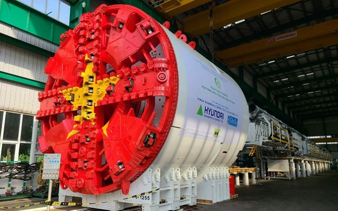 Robot đào hầm của dự án đường sắt đô thị đoạn Nhổn - ga Hà Nội có chiều dài hơn 100m, nặng khoảng 850 tấn, mỗi ngày chiếc máy đào được khoảng 10m.