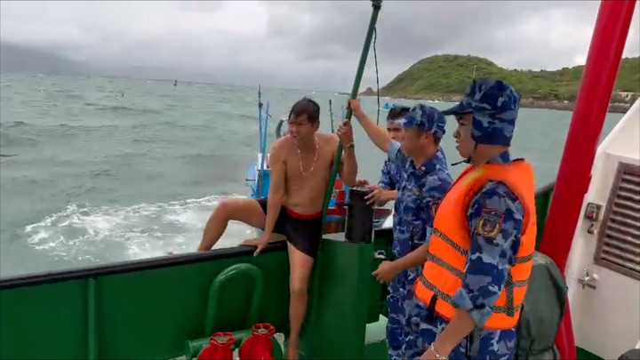 Ba người dân đi câu cá bị sóng lớn đánh lật xuồng, rơi xuống biển, may mắn được tàu Cảnh sát biển 9033, Hải đoàn 32 phối hợp cùng ngư dân cứu nạn thành công.