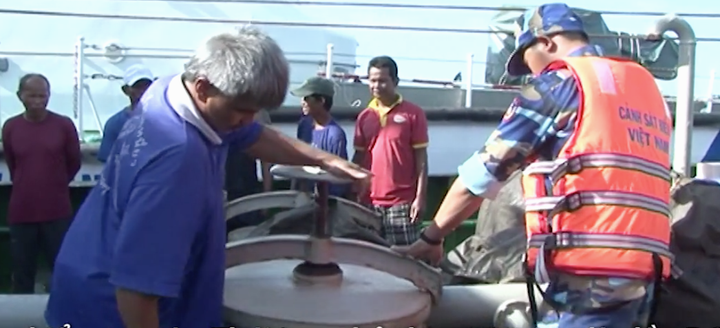 Sau nhiều giờ truy đuổi, cảnh sát biển đã bắt giữ tàu Thái Lan vận chuyển trái phép 300.000 lít dầu.