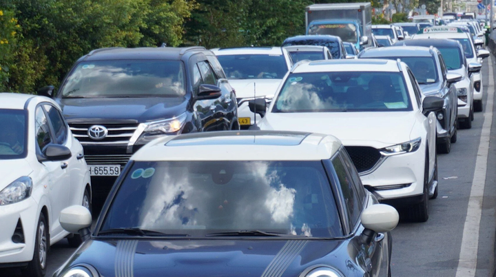 Từ 10h sáng, hàng ngàn phương tiện đổ về nút giao An Phú để vào đường dẫn lên cao tốc TP.HCM - Long Thành - Dầu Giây. Tuy nhiên, do khu vực này vẫn đang thi công nên khi lượng xe đổ về quá nhiều dẫn đến tình trạng ùn ứ.