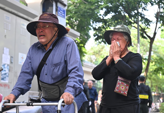 “Bác ơi, mất bác rồi... bác ơi!”, cụ ông khóc nấc lên từng tiếng, cụ bà nghẹn ngào chắp tay hướng về Nhà tang lễ Quốc gia vái vọng Tổng Bí thư Nguyễn Phú Trọng.