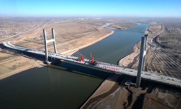 Cầu dây văng siêu lớn trên sông Hoàng Hà (Trung Quốc) có 2 tháp chính cao 113m và 88 dây cáp nặng 700 tấn giúp kết nối hai tuyến đường cao tốc ở khu tự trị Ninh Hạ.