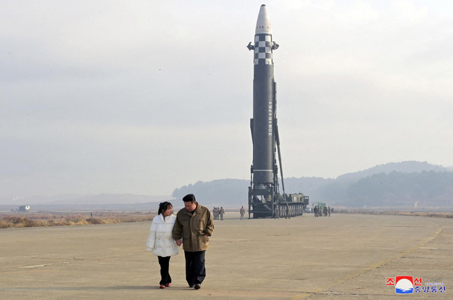 Hình ảnh được công bố ngày 19/2 về ông Kim Jong Un và con gái ở gần một ICBM. (Ảnh: Reuters)