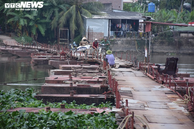 Mặc dù cây cầu phao hơn 20 năm tuổi ở Hải Dương xuống cấp trầm trọng với những thanh sắt hoen gỉ nhưng hàng ngày vẫn có nhiều người qua lại trong thấp thỏm, lo âu.