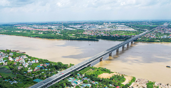 Cách cầu Thăng Long vài km ngày nay đã có thêm cầu Nhật Tân nhưng lưu lượng phương tiện qua lại cầu Thăng Long vẫn đông đúc.