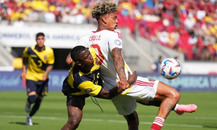 Phút 22 trận đấu giữa Ecuador và Venezuela, tiền đạo Enner Valencia nhận thẻ đỏ trực tiếp sau cú đạp vào ngực Jose Martinez.