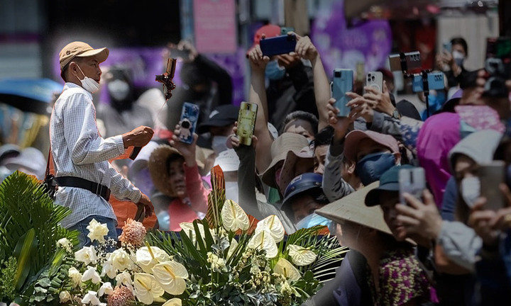 Đông đảo Youtuber, Tiktoker chen vào livestream tận nơi làm lễ hạ táng nghệ sĩ Vũ Linh - Ảnh: T.T.D.