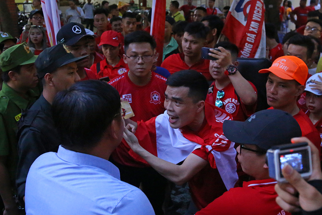 Hàng trăm cổ động viên Hải Phòng dồn vào cổng cùng lúc, khiến lực lượng an ninh sân Hàng Đẫy không thể kiểm soát được khán giả vào sân.