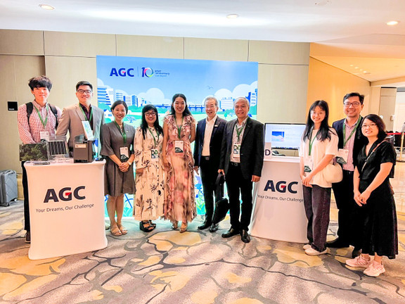 CEO Lưu Thị Thanh Mẫu (thứ 4 từ trái qua) cùng bà Joy Gai - Giám đốc Chương trình Khu vực Châu Á Thái Bình Dương của WGBC (thứ 5 từ trái qua) tham quan gian hàng đối tác AGC Asia Pacific tại khuôn khổ hội thảo IGBC 2023.