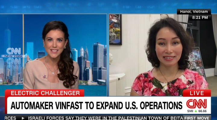 “VinFast - một trong những “người chơi” mới nhất trên thị trường ô tô điện”, người dẫn chương trình, nhà báo Julia Chatterly mở đầu First Move với lời giới thiệu về VinFast và màn chào sàn ấn tượng trên Nasdaq cũng như kế hoạch mở rộng hoạt động tại Mỹ với việc khởi công xây dựng một nhà máy tại Bắc Carolina.