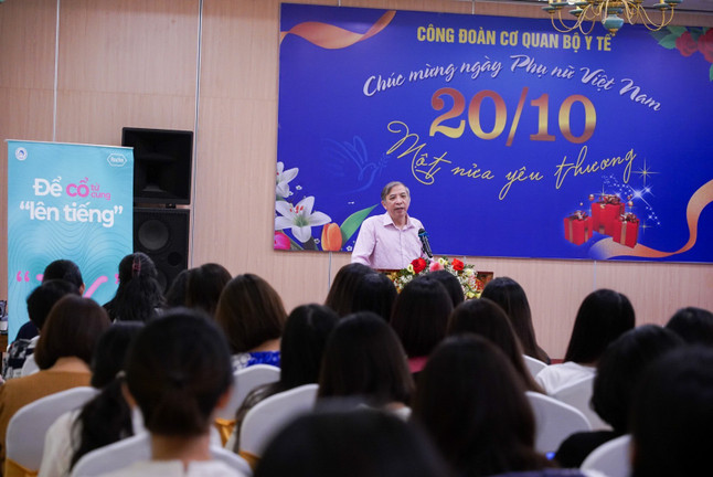 Bà đánh giá cao hoạt động vì sức khỏe phụ nữ công đoàn Bộ Y tế - đội ngũ nữ giới cũng cần được quan tâm không kém khi luôn phấn đấu và nỗ lực không mệt mỏi vì công tác chăm sóc sức khỏe người dân.