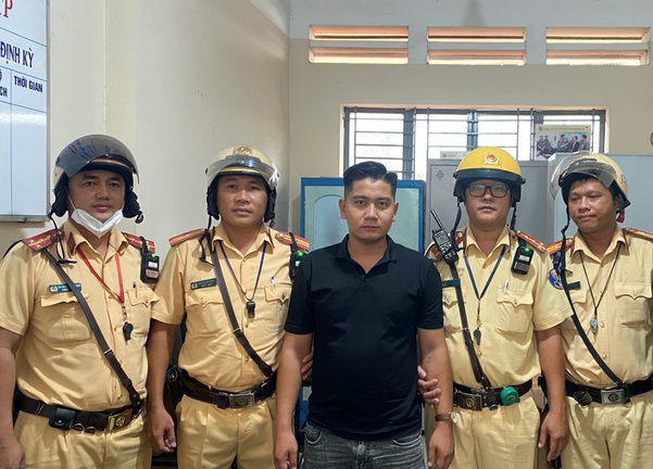 Lực lượng CSGT Bình Triệu bắt giữ Nguyễn Văn Chiến. (Ảnh: CACC)