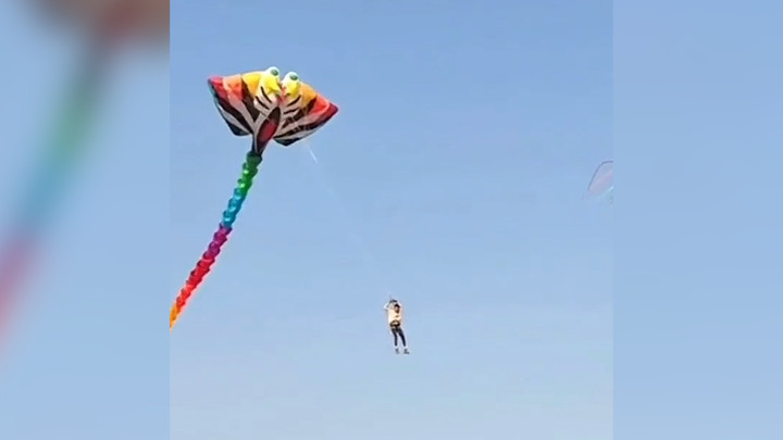 Chàng trai liều lĩnh bay cùng diều khổng lồ