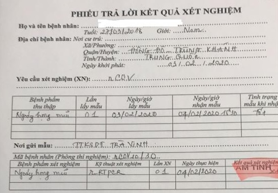 Ngày 5/2, UBND tỉnh Trà Vinh cho biết, Viện Pasteur TP.HCM vừa trả kết quả xét nghiệm đối với cháu bé 2 tuổi quốc tịch Trung Quốc tại xã Mỹ Hòa, huyện Cầu Ngang. Theo đó, cháu không nhiễm virus corona.