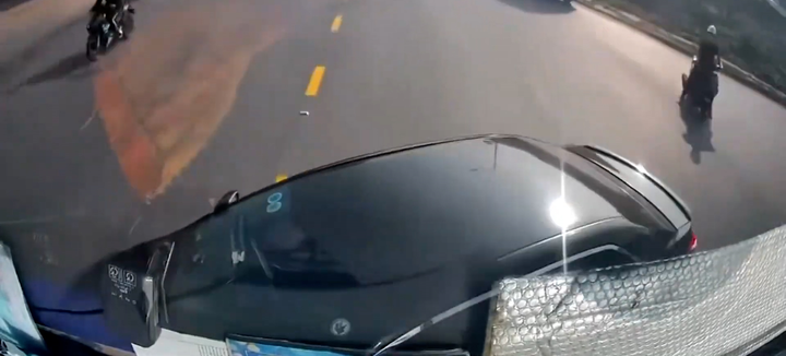Ô tô con bị tông xoay ngang đường sau khi tài xế bất ngờ cắt mặt xe tải trên quốc lộ 18 đoạn qua thị xã Quế Võ, Bắc Ninh.