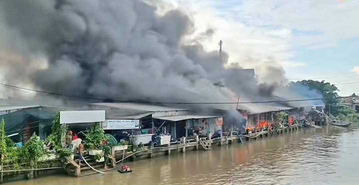 Theo thông tin ban đầu, vụ cháy xảy ra vào khoảng hơn 11h trưa nay. Ngọn lửa xuất phát từ một ngôi nhà trong chợ sau đó lan nhanh sang các căn lân cận.