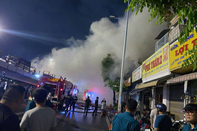 Đám cháy bùng phát tại cửa hàng kinh doanh đồ gỗ mỹ nghệ ở cửa ngõ sân bay Tân Sơn Nhất, TP.HCM khiến lực lượng chữa cháy căng mình dập lửa.