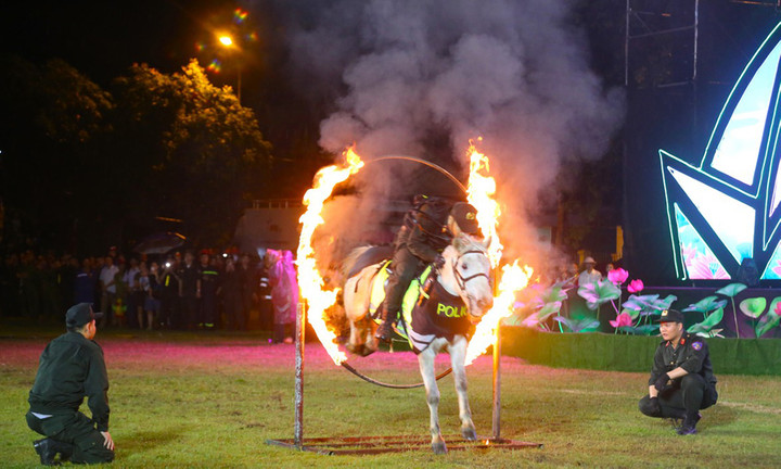 Đoàn Cảnh sát cơ động kỵ binh diễu hành qua sân khấu.