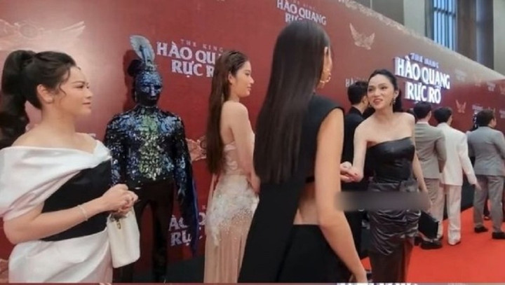 Tại thảm đỏ, bốn người đẹp trong lúc xếp hàng chờ đến lượt chụp ảnh cùng Đàm Vĩnh Hưng. Theo thứ tự đứng là Hương Giang, Lệ Nam, Nhật Kim Anh và sau cùng là Thùy Tiên.