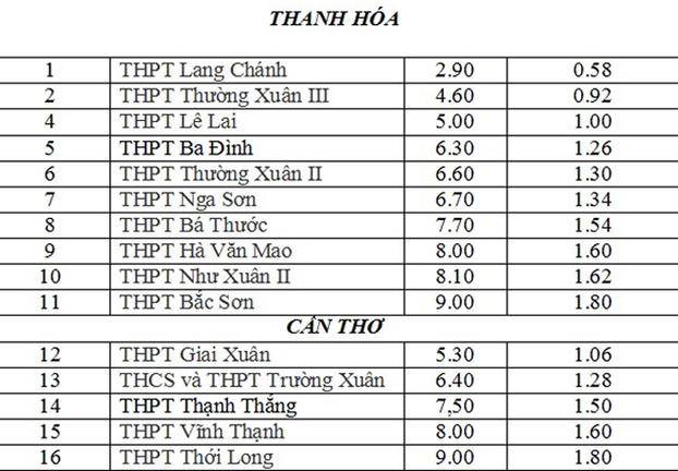 Điểm chuẩn lớp 10 của một số trường ở Thanh Hóa và Cần Thơ.