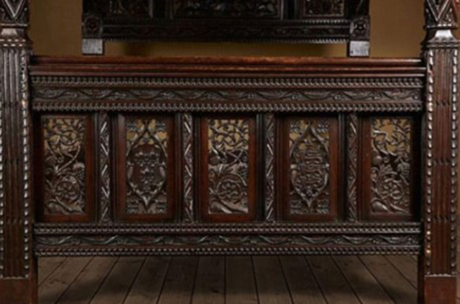 Ngoài việc được cho là nơi vua Henry VIII có thể đã ra đời, chiếc giường còn nổi bật với những hình ảnh và trích dẫn từ Kinh thánh, cùng với những biểu tượng trung cổ về sự sinh sôi như chùm nho và trái dâu.