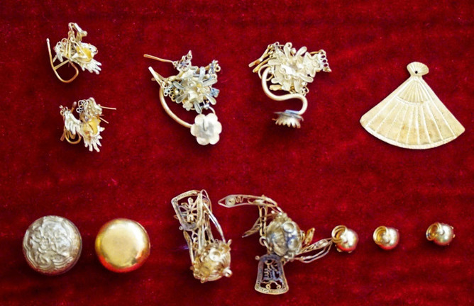 Tất cả hiện vật được chế tác thủ công từ vàng 24k tinh xảo với hoạ tiết đặc trưng đầu thế kỷ 20 như hoa văn rồng, tứ quý, hoa chanh… Hiện vật độc bản, thể hiện sự chế tác công phu, cầu kỳ, đại diện cho nghệ thuật trang sức - đồ thờ thời Nguyễn đạt đến đỉnh cao.