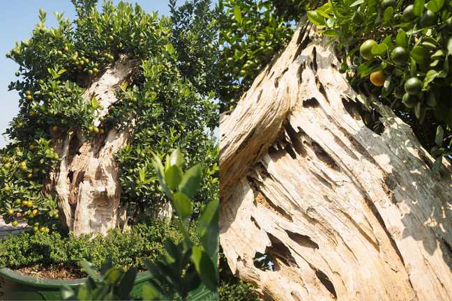 Giá trị của một chậu quất ghép còn nằm ở phần gỗ lũa, đó là phần gốc, lõi cứng nhất, bền nhất của các loại cây gỗ tự nhiên, cổ thụ lâu năm.