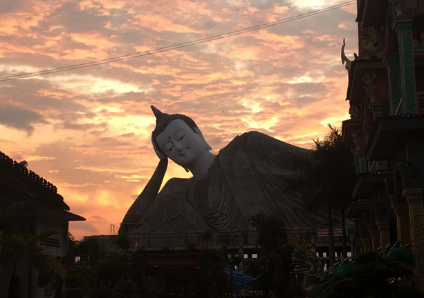Tượng Phật Thích Ca nhập niết bàn ngoài trời được Ban Trị sự chùa Som Rong (367 Tôn Đức Thắng, Phường 5, TP Sóc Trăng, tỉnh Sóc Trăng) phối hợp với Ban Trị sự Giáo hội Phật giáo Việt Nam tỉnh Sóc Trăng, Hội Đoàn kết Sư sãi yêu nước tỉnh khởi công vào tháng 10/2017 với kinh phí hơn 20 tỷ đồng.