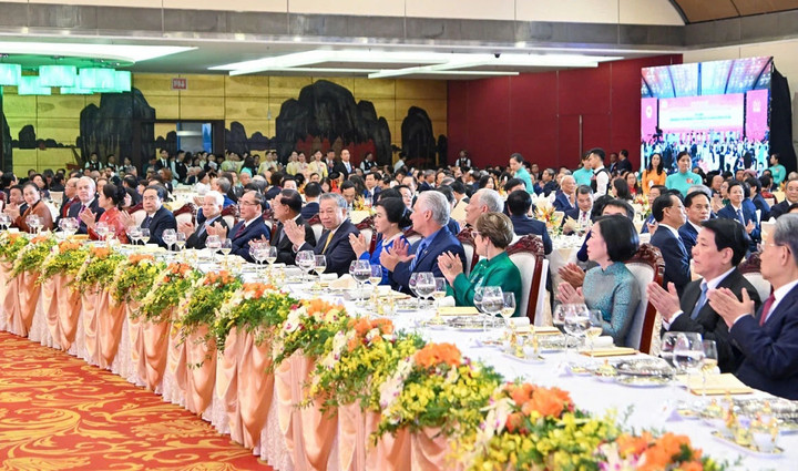 Chủ tịch Hồ Chí Minh đã từng nói: 'Sức mạnh, sự vĩ đại và sự bền bỉ của Nhân dân Việt Nam cơ bản là ở sự đoàn kết của Nhân dân Việt Nam và sự ủng hộ của nhân dân thế giới… Sự đoàn kết quốc tế có ý nghĩa to lớn đối với chúng tôi'”. Khắc ghi lời dạy đó, Việt Nam sẽ tiếp tục đồng hành, chung tay đóng góp cùng bạn bè quốc tế kiến tạo một thế giới hòa bình, thịnh vượng và phát triển bền vững”, Chủ tịch nước Lương Cường cho biết.