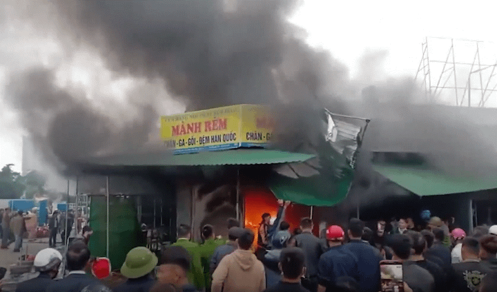 Thông tin ban đầu, có 7 ki ốt bán đồ nhựa, chăn, ga, gối, đệm…bị lửa thiêu rụi hoàn toàn. Tuy vụ cháy gây thiệt hại lớn về tài sản của các tiểu thương, nhưng rất may không gây thương vong về người.
