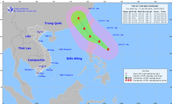 Văn phòng thường trực Ban Chỉ đạo Quốc gia về phòng, chống thiên tai đề nghị các tỉnh, thành phố nêu trên theo dõi chặt chẽ diễn biến của bão Doksuri.