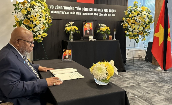 Chủ tịch Đại hội đồng Liên hợp quốc Dennis Francis đã đến viếng Tổng Bí thư Nguyễn Phú Trọng tại trụ sở Phái đoàn thường trực Việt Nam tại Liên hợp quốc ở Mỹ.