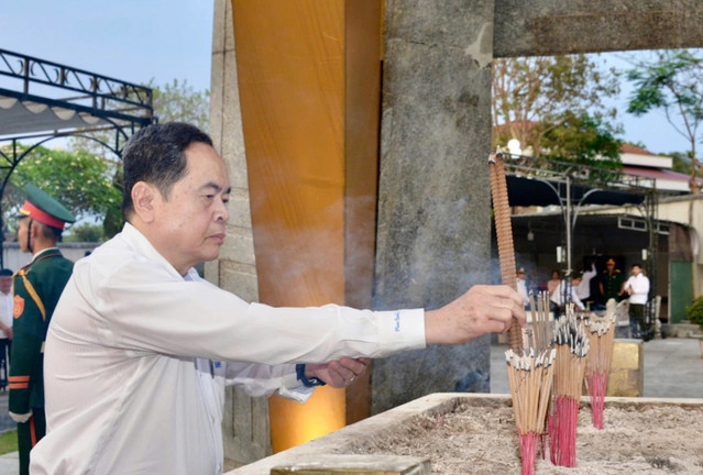 Chủ tịch Quốc hội Trần Thanh Mẫn dâng hương tưởng niệm các anh hùng liệt sĩ tại Quảng Trị nhân dịp Kỷ niệm 50 năm ngày Giải phóng Miền Nam, thống nhất đất nước.