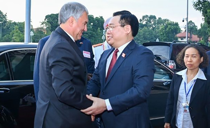 Tại hội đàm, thay mặt Quốc hội Việt Nam, Chủ tịch Quốc hội nồng nhiệt chào mừng Chủ tịch Vyacheslav Victorovich Volodin và các thành viên cấp cao của Duma Quốc gia Quốc hội Liên bang Nga thăm chính thức Việt Nam.