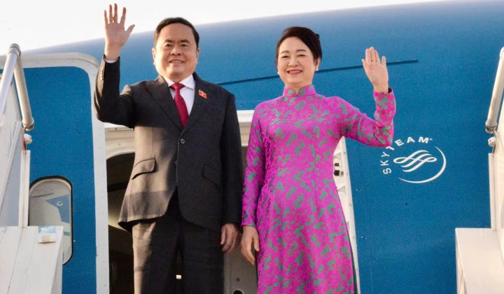Chủ tịch Quốc hội và Phu nhân cùng Đoàn đại biểu cấp cao Việt Nam tại sân bay Salé Rabat.