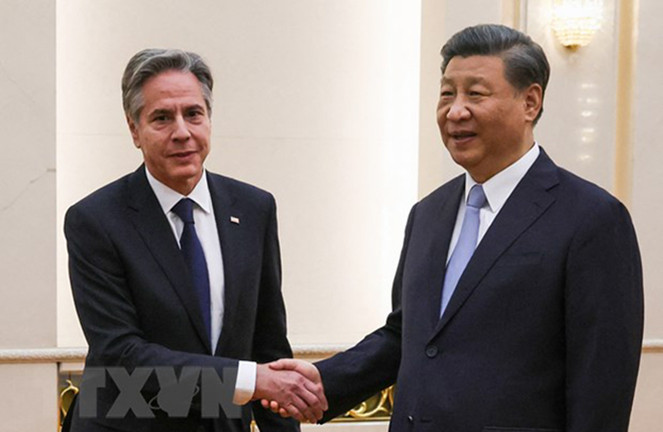 Chủ tịch Trung Quốc Tập Cận Bình gặp Ngoại trưởng Mỹ Antony Blinken tại Bắc Kinh chiều 19/6. (Ảnh: Tân Hoa Xã)
