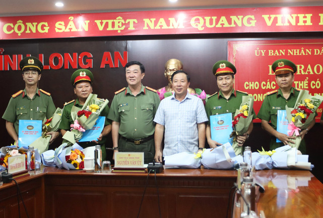 Theo đó, UBND tỉnh Long An đã quyết định trao thưởng cho 5 tập thể gồm: Phòng Cảnh sát Hình sự, Công an tỉnh 20 triệu đồng; Công an thành phố Tân An 10 triệu đồng; Phòng 5 - Cục Nghiệp vụ (Bộ Công an), Phòng 6 - Cục Cảnh sát Hình sự (Bộ Công an) và Công an huyện Tân Phú (Đồng Nai) mỗi đơn vị 10 triệu đồng.