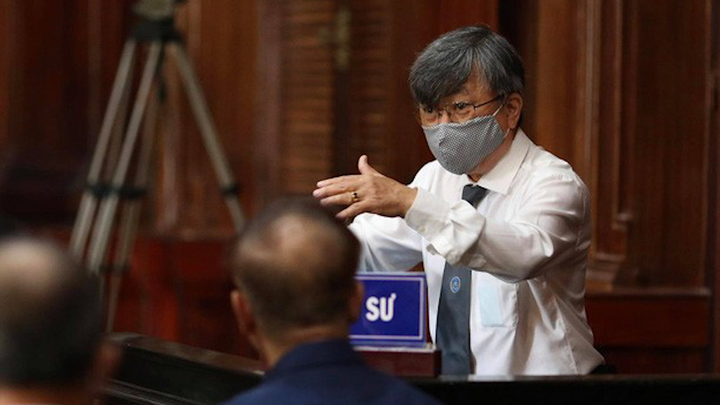 Chủ toạ nhắc nhở luật sư của bị cáo Nguyễn Thành Tài trong phiên toà sáng nay