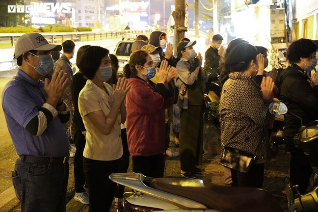 Chùa Phúc Khánh làm lễ cầu an trực tuyến, nhiều người đứng bên ngoài vái vọng