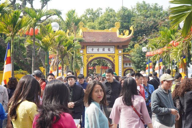 Chiều mùng 2 Tết Nguyên đán Giáp Thìn 2024, hàng nghìn người dân, du khách đổ về ngôi chùa có lịch sử lâu đời nhất ở Thăng Long để dâng lễ, cầu bình an cho năm mới.