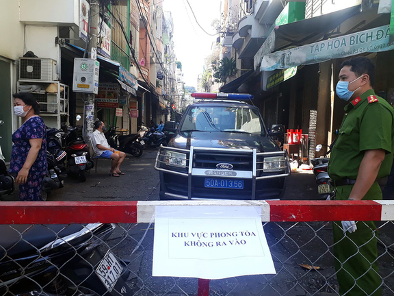Lực lượng chức năng phong tỏa hẻm 287 Nguyễn Đình Chiểu.