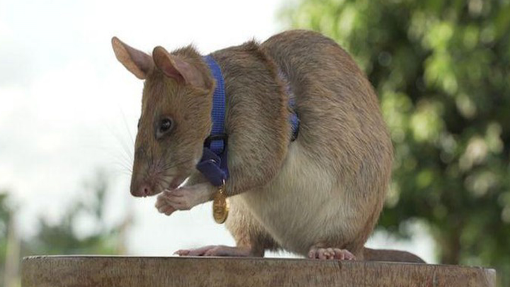 Magawa, một con chuột túi châu Phi, được tổ chức từ thiện của Anh trao huân chương dũng cảm vì đã phát hiện hàng chục quả mìn tại Campuchia.