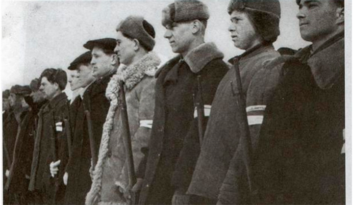 Lực lượng vũ trang địa phương Quân đoàn Tự vệ Belarus BSA do phát xít Đức thành lập với tấm băng tay trắng – đỏ - trắng đặc trưng để dễ nhận dạng.