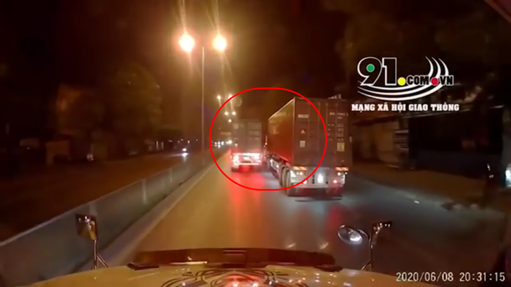 Clip: 2 xe container đua tốc độ, chèn ép nhau trên đường