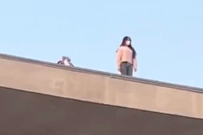 Hình ảnh cô gái ngang nhiên trèo lên nóc bảo tàng Lịch sử Quân sự Việt Nam để sống ảo. (Ảnh: Chụp màn hình)