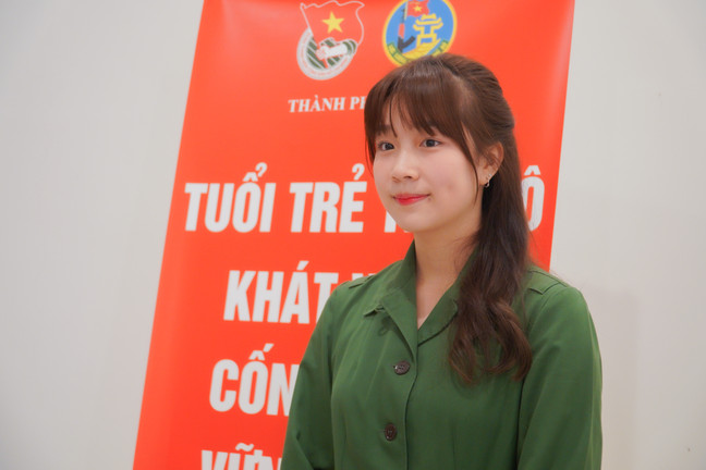 Tại buổi gặp mặt những thanh niên Hà Nội tình nguyện lên đường nhập ngũ năm 2025, trong hàng chục nam tân binh thấp thoáng bóng dáng cô gái nhỏ nhắn với gương mặt sáng và ánh mắt đầy tự hào. Cô là Lưu Thanh Vy (25 tuổi, ở phường Văn Chương, quận Đống Đa), người tạm hoãn việc học thạc sĩ ngành Marketing tại Đại học Kinh tế Quốc dân để lên đường nhập ngũ.